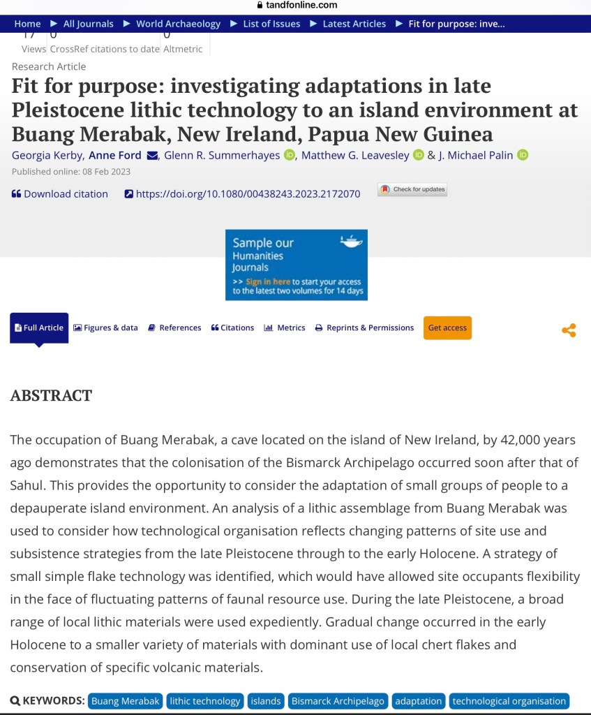 Fit for purpose: investigating adaptations in late Pleistocene lithic technology to an island environment at Buang Merabak, New Ireland, Papua New Guinea